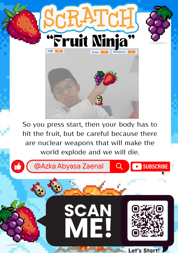 how to play: So you press start, then your body has to hit the fruit, but be careful because there are nuclear weapons that will make the world explode and we will die.
